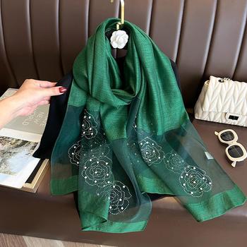 Thời Trang Mùa Xuân Mùa Thu Phụ Nữ 180*70Cm Trọng Lượng Nhẹ Khăn Choàng Sang Trọng Kết Thúc Tốt Đẹp Lụa Thêu Hoa Khăn Choàng Organza Khăn Hijab Phụ Nữ